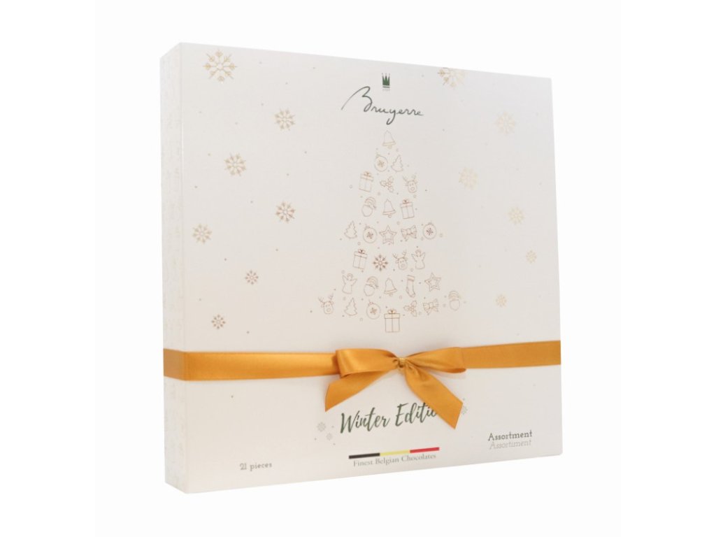 Luxusní balení vánočních pralinek v krabičce s mašlí. Směs pralinek v hořké, mléčné a bílé čokoládě. Dárek který potěší.