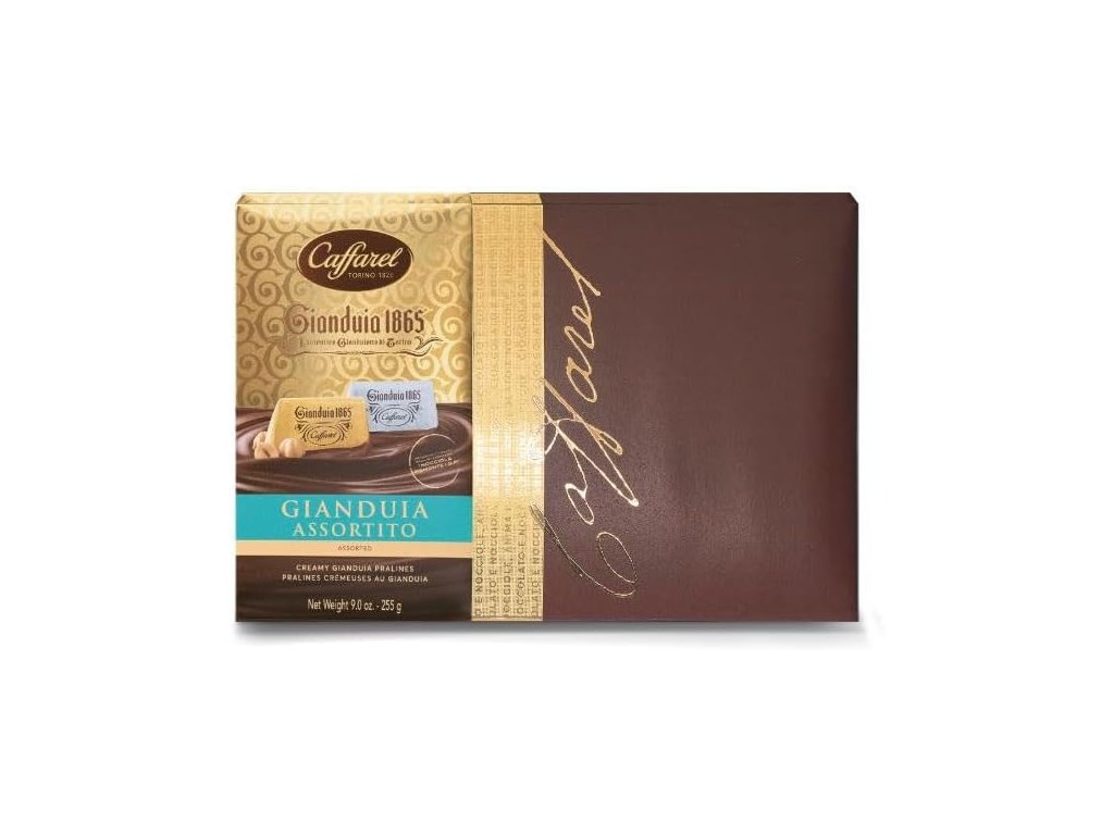 Směs hořké a mléčné čokolády Gianduia v exkluzivním dárkovém balení.