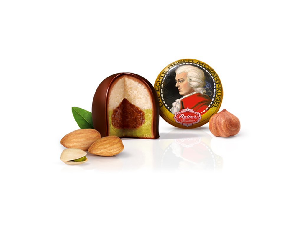 Plněné čokoládové bonbóny z hořké čokolády (17%) a alpské mléčné čokolády (18%), s lískooříškovým nugátem (10%), pistáciovým marcipánem (30%), marcipánem (25%). Obsah kakaové sušiny v čokoládě nejméně 60% a v mléčné čokoládě 35%.